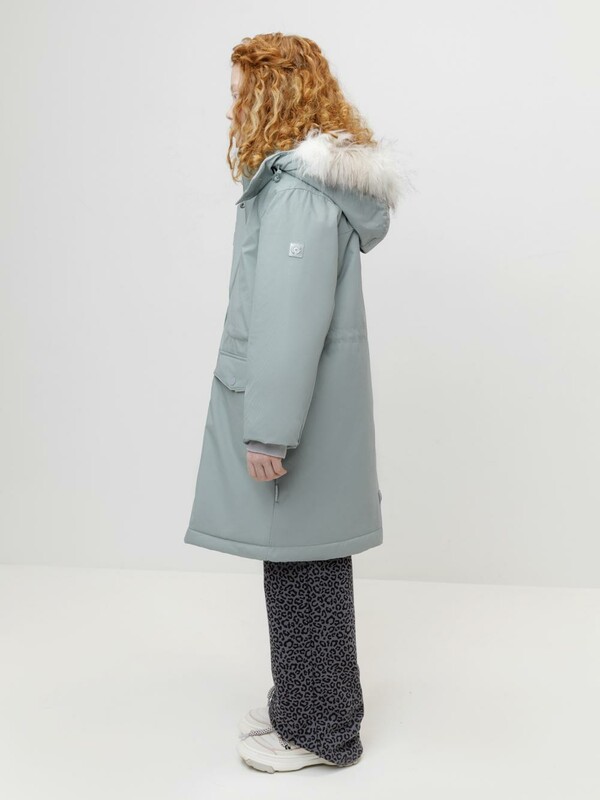 Зимнее пальто для девочки с утеплителем SEE®: 250 г/м2. Выполнено из мембранной ткани с дополнительной тефлоновой обработкой, которая предохраняет изделие от загрязнений и отталкивает влагу. Подклад выполнен из 100% полиэстера Tricot. Пальто застёгивается на молнию, предусмотрена защита подбородка. Съёмный капюшон на кнопках и липучках имеет отстёгивающийся искусственный мех. На рукавах мягкие манжеты. По бокам два кармана с клапанами, внутри карман на молнии. По талии эластичная утяжка со стопперами для регулировки ширины пальто. Во всех изделиях верхнего ассортимента для безопасности ребёнка предусмотрены светоотражающие элементы.