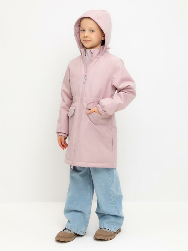 Демисезонное пальто для девочки с утеплителем SEE®: 120 г/м2. Выполнено из мембранной ткани с дополнительной тефлоновой обработкой. Данный вид обработки предохраняет изделие от загрязнения и лучше отводит влагу. Подклад из 100% полиэстера. У изделия предусмотрена защита подбородка. Несъемный капюшон имеет утягивающий шнур со стопперами. Низ рукавов и пояс изделия имеют эластичную резинку для лучшего прилегания. По бокам накладные карманы с клапанами на кнопках. Во всех изделиях верхнего ассортимента для безопасности ребенка предусмотрены светоотражающие элементы.