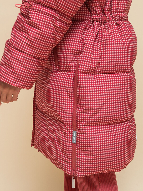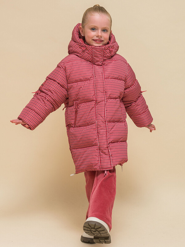 Пальто зимнее для девочки. На внешнюю поверхность материала нанесена водоотталкивающая пропитка (DWR), она задерживает грязь и влагу снаружи — ребёнок не промокнет. Также есть дополнительная пропитка на внутренней стороне ткани. Пальто актуального оверсайз-силуэта подходит для всех типов фигуры. Капюшон двухшовный, что обеспечивает анатомически правильную форму и комфортную посадку по голове. Капюшон не отстегивается, есть регулировка объема эластичными шнурами с пластиковыми стопперами. Внутренние манжеты рукавов из эластичной рибаны (ткань в рубчик) — дополнительная защита от ветра и холода. Ширина горловины позволяет надевать свитер с объемным воротником или объёмный шарф. Центральная застёжка на тракторную молнию с двумя пуллерами — удобно садиться. Тканевый стоппер защищает подбородок от зажима молнией. Фиксирующая строчка предохраняет планку от «заедания» в процессе застёгивания. Куртка-пальто тёплая — дополнительно, для защиты от ветра и холода, центральная молния закрыта ветрозащитной планкой на липучках (велькро). Высокотехнологичные липучки нового образца не цепляются к одежде и не нуждаются в постоянной чистке от ворсинок. Внутренняя кулиска по талии со стороны спинки и рукавам позволяет регулировать объём и менять силуэт изделия. В боковых швах вставлены застёжки-молнии для возможности увеличения ширины по низу изделия. На рукаве модель украшает силиконовая нашивка, надпись переводится: «Сохрани этот день». Пальто стёганое дополнено прорезными карманами на молнии — удобно пользоваться. Карманы с боковым входом закрываются на водонепроницаемую молнию со скрытыми звеньями — их содержимое не промокнет. Внутри карманы утеплены мягким флисом. В каждой куртке нейм-лейбл! Ребёнок не потеряется и не потеряет куртку! На спинке и в боковых швах расположены светоотражающие элементы — безопасность в тёмное время суток. За изделием просто ухаживать. Пальто в клетку - тренд сезона. Куртка выполнена из полиэстера — она тёплая, не промокает, легко стирается, быстро сохнет, сохраняет отличную форму и цвет надолго. Подкладка из мягкого, тёплого и дышащего флиса (по стану, внутреннему воротнику и в капюшоне). В рукавах подкладка из тонкого полиэстера — благодаря этому ребенку легко надевать куртку, руки не путаются в рукавах. Пуховик выполнен в модном красном цвете. Он легко комбинируется с различными брюками, юбками, колготками. Размерная линейка: 3 (98); 4 (104); 5 (110); 6 (116); 7 (122); 8 (128); 9 (134); 10 (140); 11 (146). Пальто оверсайз подходит для маленьких девочек дошкольного и младшего школьного возраста, а также девочек-подростков. Рекомендуемый температурный режим: не ниже минус 30 градусов. Утеплитель: экопух. В рукавах дополнительный слой тонкого синтепона. Модель идеальна для носки в детский сад, школу, для прогулок и отдыха. Зимнее пальто для девочки — прекрасный подарок для дочери или внучки на Новый год или любой другой праздник.