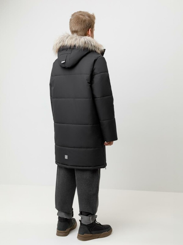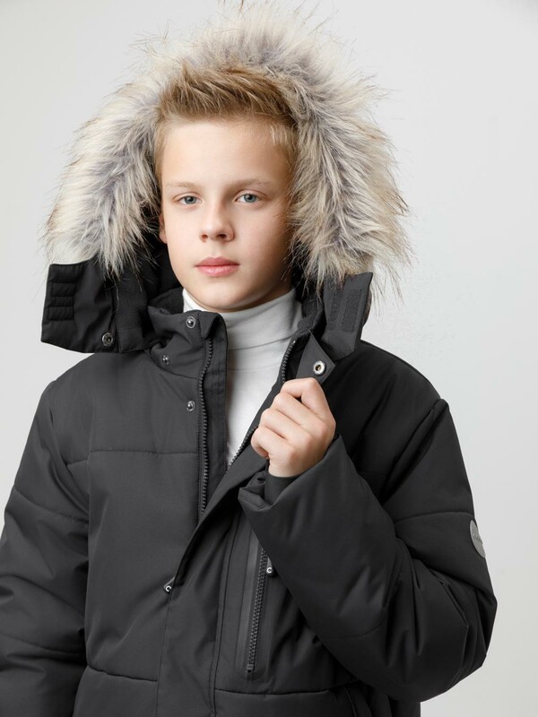 Зимнее пальто для мальчика с утеплителем SEE®: 300 г/м2. Выполнено из мембранной ткани с дополнительной тефлоновой обработкой, которая предохраняет изделие от загрязнений и отталкивает влагу. Подклад выполнен из 100% полиэстера Tricot. Пальто застёгивается на молнию и внешнюю планку с кнопками. Съёмный капюшон имеет эластичную утяжку со стопперами и отстёгивающийся мех на молнии, регулируется по глубине с помощью липучки. На рукавах внутренние эластичные манжеты. По бокам два кармана на молниях и один карман на груди. Во всех изделиях верхнего ассортимента для безопасности ребёнка предусмотрены светоотражающие элементы.
