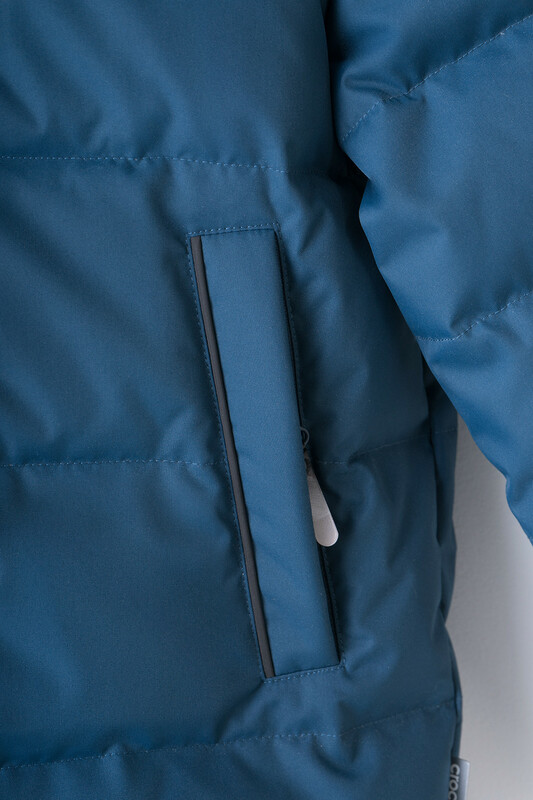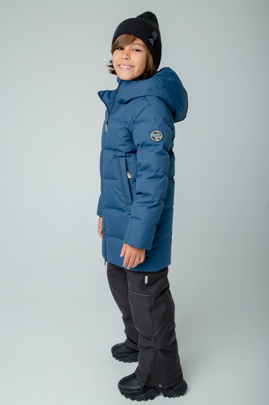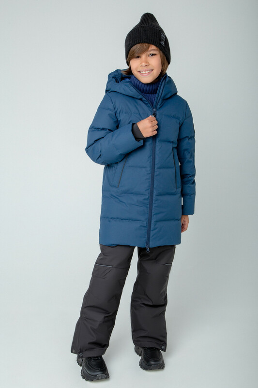 Пальто для мальчика с натуральным утеплителем из гипоаллергенного гусиного пуха (70%) и пера (30%). Рекомендованный температурный режим - от -5° до -30°.