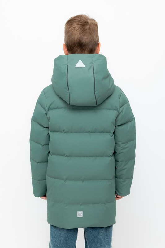 Пальто для мальчика с натуральным утеплителем из гипоаллергенного гусиного пуха (70%) и пера (30%).