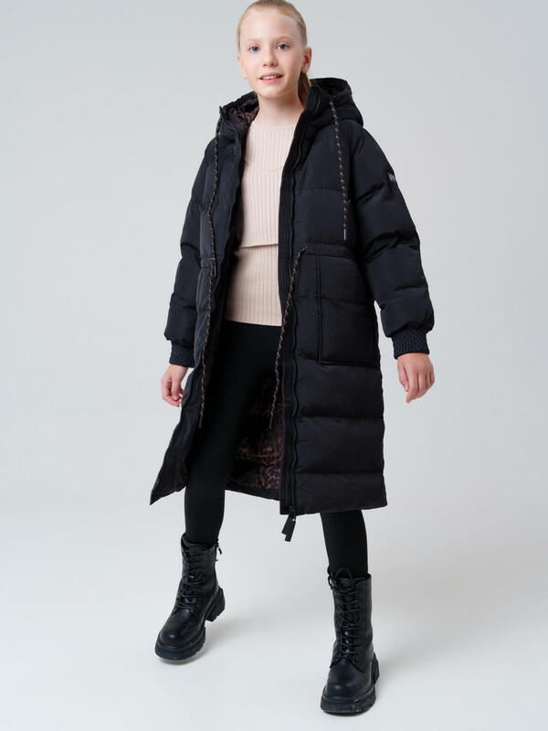 Это тёплое стильное подростковое пальто для девочек разработано специально для городских будней в холодный сезон. Оно сохраняет тепло благодаря продуманной многослойной структуре и при этом остаётся лёгким и удобным. Несъёмный капюшон надёжно защищает голову от снега и ветра, а утяжка по линии талии позволяет создать более женственный и аккуратный силуэт.