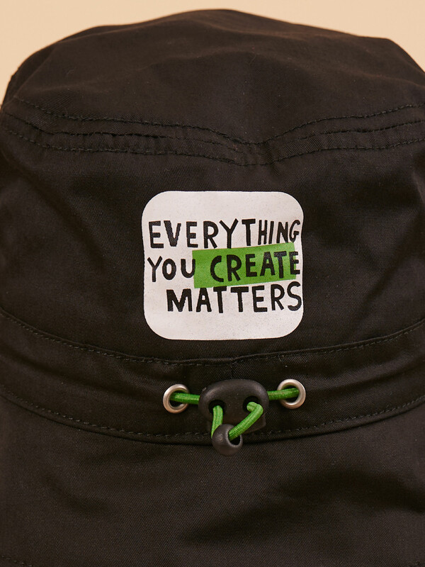 Стильная детская панама. Модель со стандартными по ширине полями. Яркая хлопковая панама станет отличным дополнением детского летнего гардероба. По всему периметру изделия проходит эластичный шнур со стоппером — с его помощью можно зафиксировать панаму на голове. Модель дополнена отверстиями, что обеспечивает воздухообмен и комфорт при носке. Панама однотонная, декорирована лаконичным и стильным принтом с позитивным настроением (надпись переводится: «Всё, что ты создаёшь, важно»). Размерная линейка: 48-50, 51-52, 53-54. Панама детская представлена в следующих цветах: чёрный, синий, жёлтый, зелёный, розовый, бежевый, тёмно-синий, светло-зелёный. Каждый ребёнок найдёт цвет по душе! Такая панамка подходит детям дошкольного и младшего школьного возраста, а также подросткам. Панама летняя незаменима для пляжа, дачи, похода, прогулок, отдыха — отлично защитит от солнца. Превосходно сочетается с любой одеждой. Чудесный подарок дочке, сыну, внучке или внуку на любой праздник. Выбирайте нужный размер по таблице размеров на фото. Цвет товара на экране вашего устройства может отличаться от цвета изделия вживую.