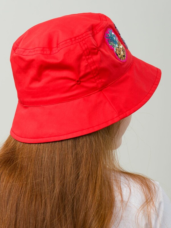 Панама для девочек. Нашивка ананас из разноцветных пайеток и нашивка из двусторонних переворачивающихся пайеток. Перевод Сиять.