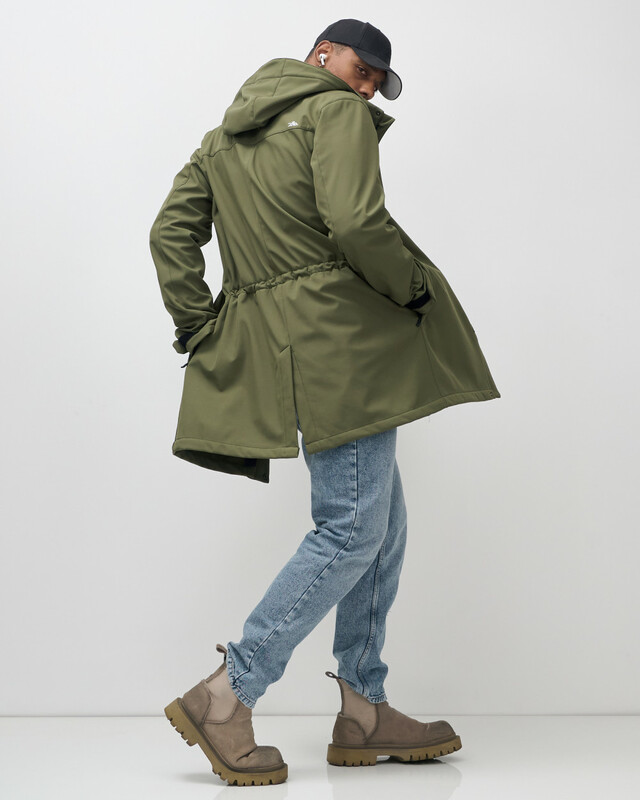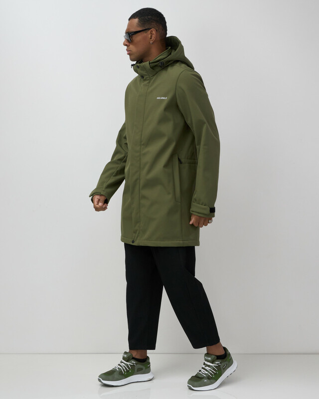Главная страница - Каталог - Мужская одежда - Мужская верхняя одежда - Мужская верхняя одежда весна-осень - Парка спортивная мужская с капюшоном softshell цвета хаки 9565Kh