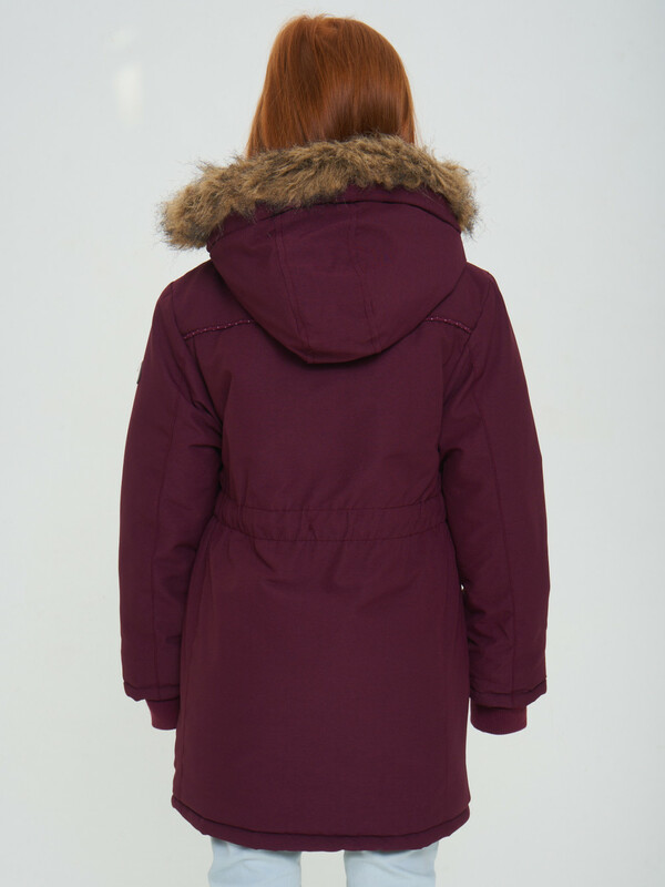 Парка зимняя подростковая для девочки бордового цвета 2490Bo