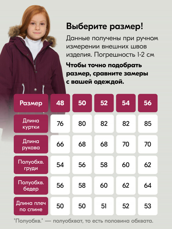 Цвет парки: бордовый, розовый