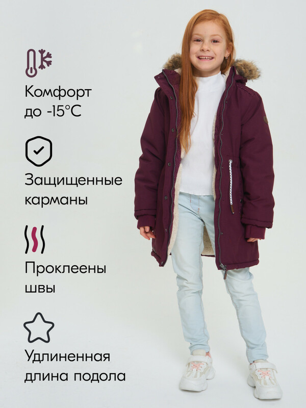 Зимняя детская парка - идеальный выбор для маленьких модниц! Она обеспечит комфорт и защиту вашей маленькой принцессы в холодное время года. Несъемный капюшон со съемной опушкой на кнопках убережет голову и лицо ребенка от ветра и снега. Подкладка из искусственного меха подарит дополнительное тепло, комфорт и уют. Ветрозащитная планка на кнопках и защита подбородка обеспечат плотное прилегание к шее и защитят от сквозняков. Внутри куртки-парки имеется удобный прорезной карман для хранения мелких предметов, а боковые карманы на кнопке сохранят руки в тепле. Шнурок утяжка на талии позволит подогнать парку по фигуре девочки, а трикотажные манжеты на рукавах предотвратят попадание холодного воздуха. На левом плече куртки красуется логотип бренда, что добавит стиля и узнаваемости. Эта функциональная и стильная куртка-парка подростковая для девочки станет любимой вещью в гардеробе вашей маленькой модницы! Перед использованием следует отпарить изделие, чтобы придать ему более опрятный вид и расположить утеплитель равномерно. Приятных покупок!