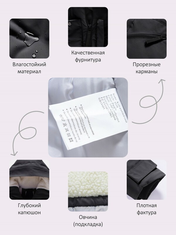 Особенности модели: водоотталкивающий материал, гипоаллергенный материал, с разрезом, с начесом, светоотражающие детали, утягивающая модель