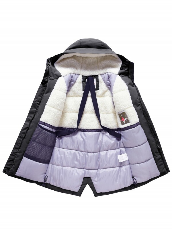 Удлинённый крой с разрезом сзади обеспечивает свободу движений и удобство при активных играх и прогулках. Вместительные карманы позволяют носить с собой всё необходимое, а внутренние лямки делают парку удобной для носки в помещении — например, в школе или торговом центре.