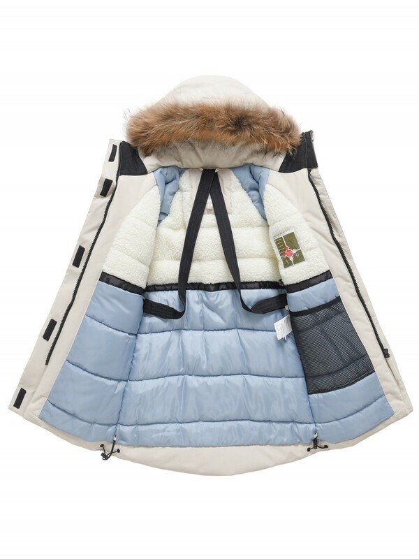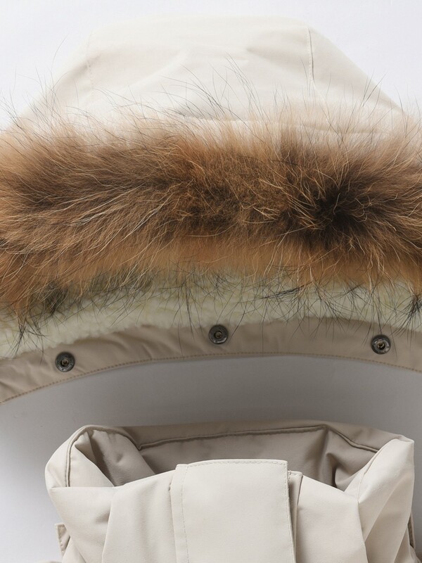 Капюшон с меховой отделкой надёжно защищает от ветра и снега, а фиксаторы на рукавах, по линии талии, на капюшоне и по низу парки помогают сохранить тепло и защитить ребёнка от продувания.