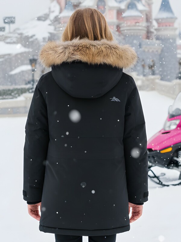 Капюшон с меховой опушкой создаёт дополнительную защиту и стильный акцент.