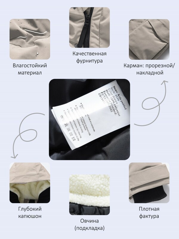 Практичные прорезные и накладные карманы позволяют удобно хранить необходимые вещи и согревать руки. Внутренние карманы делают модель ещё более функциональной. Светоотражающие детали и логотип со светоэффектом повышают заметность ребёнка в тёмное время суток.
