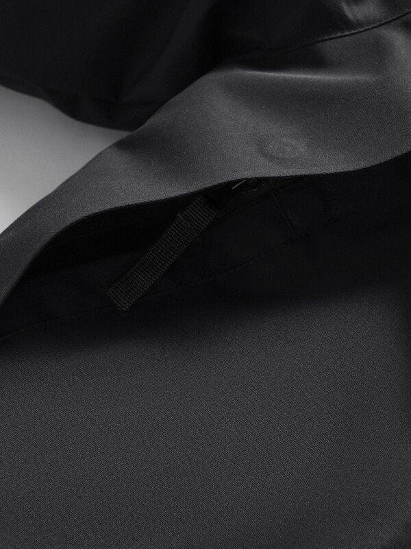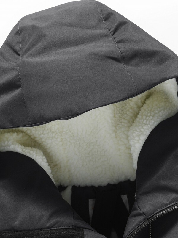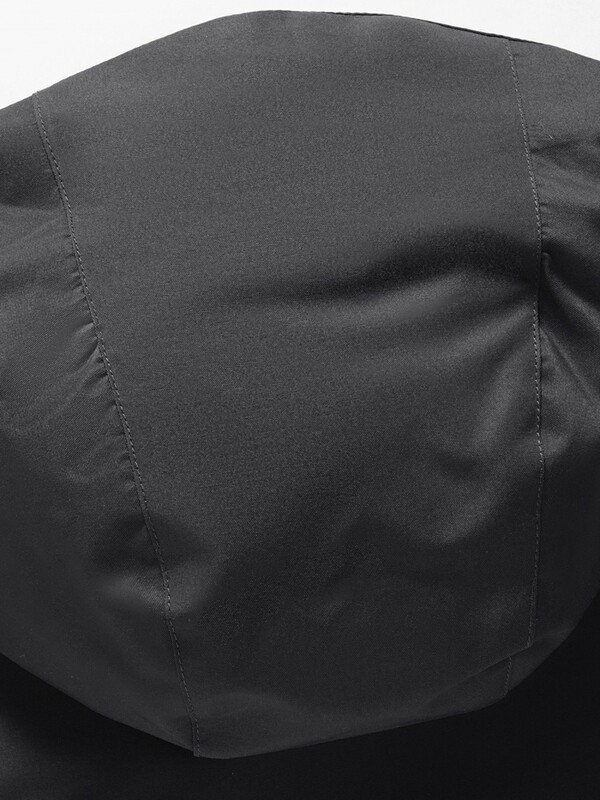 фиксаторы по низу, на капюшоне и по центру (в области талии) позволяют подстроить силуэт и защитить от продувания;