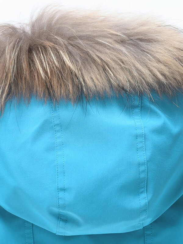 Внутренняя подкладка из овчины, полиэстера и флиса делает модель особенно уютной и приятной к телу. Капюшон несъёмный, он плотно прилегает к голове и дополнительно защищает от непогоды. Опушка из натурального меха енота на молнии при желании легко снимается. Стояче-отложной воротник надёжно закрывает шею и обеспечивает защиту даже без шарфа.