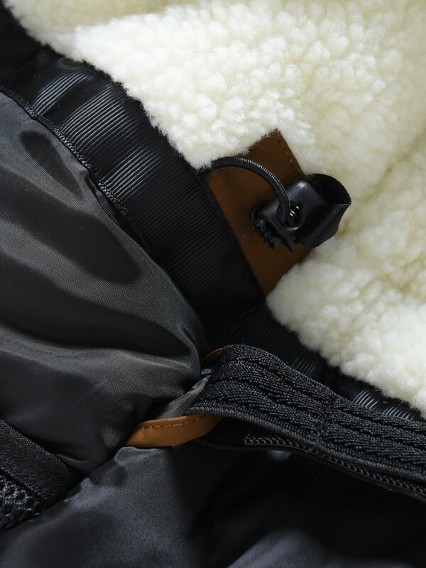 Внутренняя подкладка из овчины, полиэстера и флиса делает модель особенно уютной и приятной к телу. Капюшон несъёмный, он плотно прилегает и надёжно защищает голову в непогоду. Стояче-отложной воротник прикрывает шею и обеспечивает дополнительную защиту от ветра.