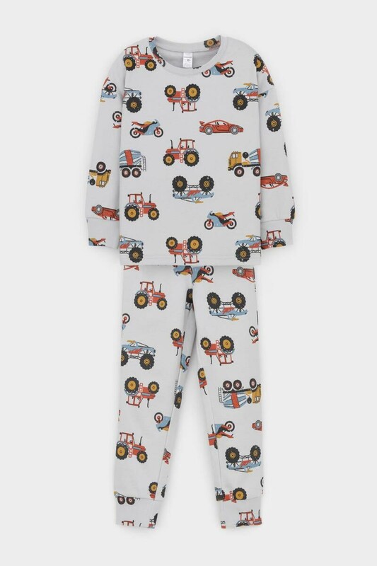 Трикотажный пижамный комплект из футера с начёсом, произведённого из натурального хлопка. У джемпера длинные рукава со спущенными плечами и эластичная мягкая горловина и манжеты. Брюки с удобным поясом на резинке, внизу манжеты. Оригинальная набивка выполнена из стойких, гипоаллергенных текстильных красителей. Все трикотажные полотна производятся в соответствии с нормами Швейцарского сертификата ЭкоТекс.