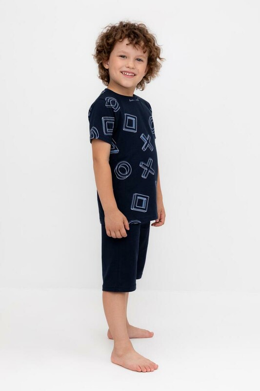 Трикотажная пижама из натурального хлопка. Футболка с короткими рукавами . У шорт эластичный пояс на резинке. Оригинальная набивка выполнена из стойких, гипоаллергенных текстильных красителей. Пижама сохраняет цвет и форму после многократных стирок. Все трикотажные полотна производятся в соответсвии с нормами Швейцарского сертификата ЭкоТекс.