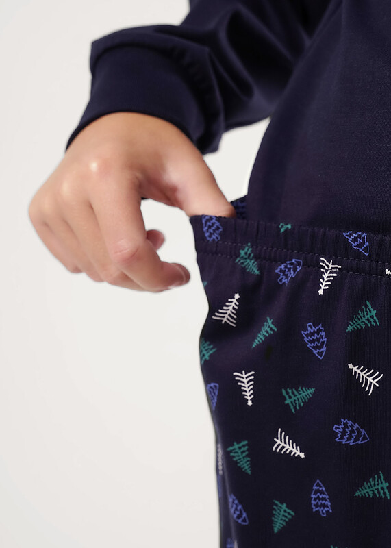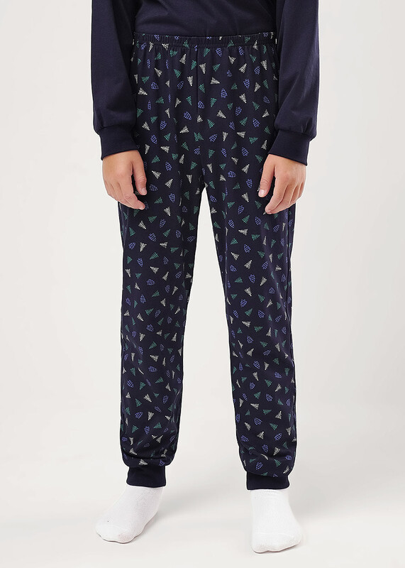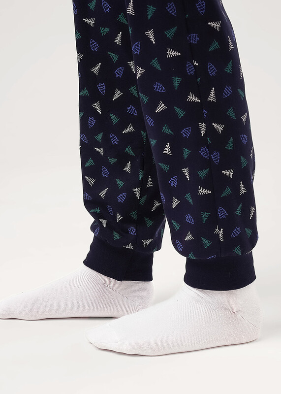 Новогодняя хлопковая пижама из джемпера и брюк. Горловина,манжеты по низу рукава и брюк из эластичного полотна. Лонгслив свободного кроя со спущенным плечом и крутым принтом. Брюки среднего объема, эластичный пояс обеспечит комфорт и идеальную посадку.