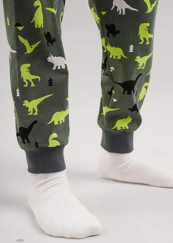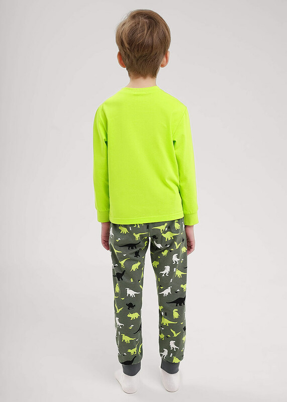 Комплект хлопковой пижамы из джемпера и брюк. Джемпер свободного кроя дополнен эластичной горловиной и манжетами. Брюки среднего объема, эластичный пояс обеспечит комфорт и идеальную посадку. По низу брюк эластичные манжеты.