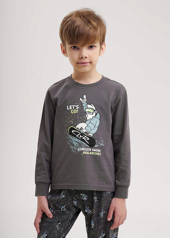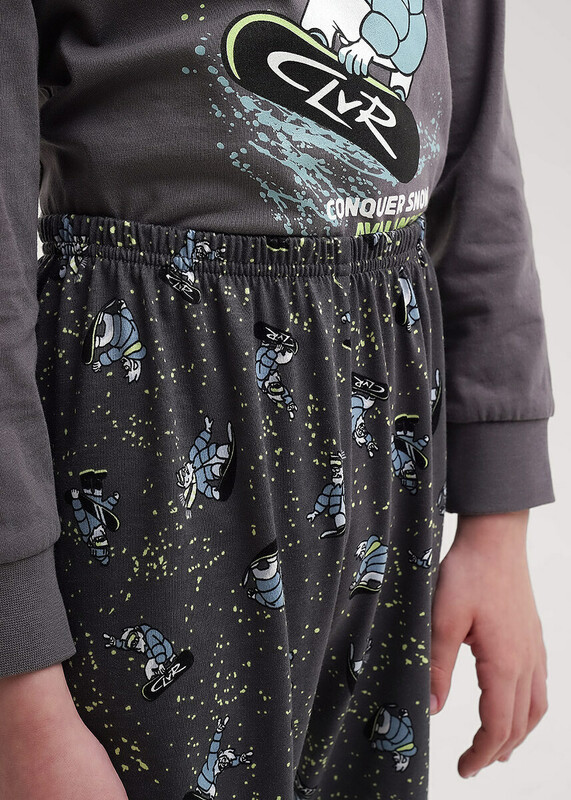 Комплект хлопковой пижамы из джемпера и брюк. Джемпер свободного кроя дополнен эластичной горловиной и манжетами. Брюки среднего объема, эластичный пояс обеспечит комфорт и идеальную посадку. По низу брюк эластичные манжеты.