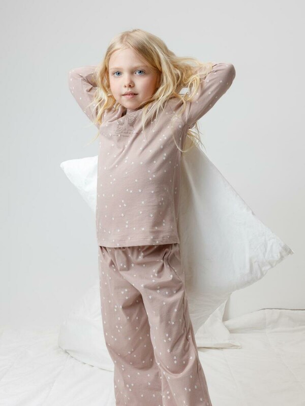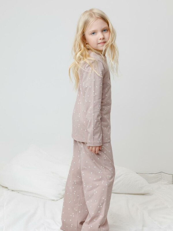 Трикотажная пижама из натурального хлопка. Джемпер с длинными втачными рукавами и прямые брюки с эластичной резинкой в поясе. Оригинальные набивка и принт выполнены из стойких гипоаллергенных текстильных гипоаллергенных красителей. Изделие сохраняет цвет и форму после многократных стирок. Все трикотажные полотна производятся в соответсвии с нормами швейцарского сертификата ЭкоТекс.