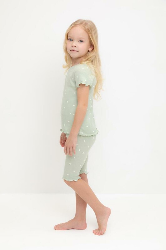 Трикотажная пижама в рубчик из натурального хлопка. Футболка с короткими втачными рукавами и шорты с эластичной резинкой в поясе. Оригинальная набивка выполнена из стойких текстильных гипоаллергенных красителей. Изделие сохраняет цвет и форму после многократных стирок. Все трикотажные полотна производятся в соответсвии с нормами швейцарского сертификата ЭкоТекс.