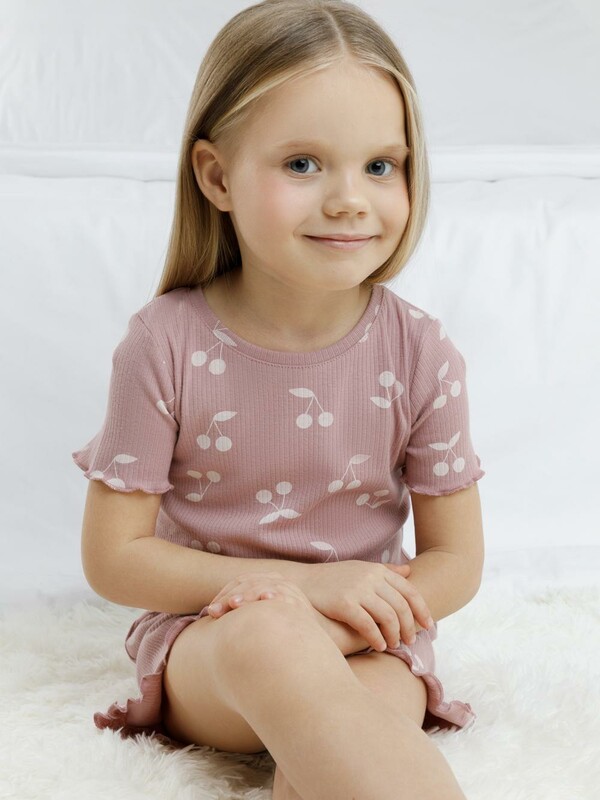 Трикотажная пижама в рубчик из натурального хлопка. Футболка с короткими втачными рукавами и шорты с эластичной резинкой в поясе. Оригинальная набивка выполнена из стойких текстильных гипоаллергенных красителей. Изделие сохраняет цвет и форму после многократных стирок. Все трикотажные полотна производятся в соответсвии с нормами швейцарского сертификата ЭкоТекс.