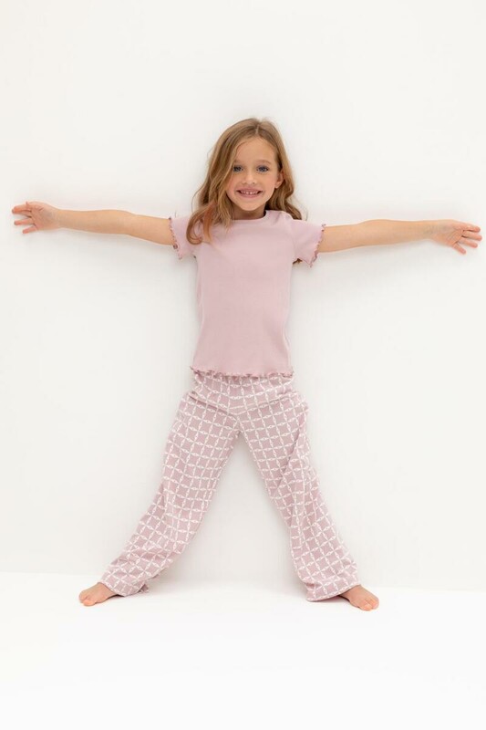 Трикотажная пижама из натурального хлопка. Футболка с короткими втачными рукавами изготовлена из эластичного трикотажа в рубчик. Брюки с эластичной резинкой в поясе выполнены из гладкого трикотажа супрем. Оригинальная набивка выполнена из стойких текстильных гипоаллергенных красителей. Изделие сохраняет цвет и форму после многократных стирок. Все трикотажные полотна производятся в соответсвии с нормами швейцарского сертификата ЭкоТекс.