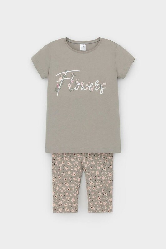 Трикотажная пижама из натурального хлопка. Удлиненная футболка с оригинальным принтом и спущенной линией плеч. У бридж в комплекте мягкий, эластичный пояс на резинке. Оригинальная набивка выполнена из стойких, гипоаллергенных текстильных красителей. Комплект сохраняет цвет и форму после многократных стирок. Все трикотажные полотна производятся в соответсвии с нормами Швейцарского сертификата ЭкоТекс.