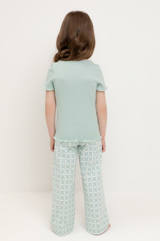 Трикотажная пижама из натурального хлопка. Футболка с короткими втачными рукавами изготовлена из эластичного трикотажа в рубчик. Брюки с эластичной резинкой в поясе выполнены из гладкого трикотажа супрем. Оригинальная набивка выполнена из стойких текстильных гипоаллергенных красителей. Изделие сохраняет цвет и форму после многократных стирок. Все трикотажные полотна производятся в соответсвии с нормами швейцарского сертификата ЭкоТекс.
