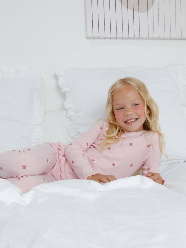 Трикотажная пижама в рубчик из натурального хлопка. Джемпер с длинными втачными рукавами и лосины с эластичной резинкой в поясе. Оригинальная набивка выполнена из стойких текстильных гипоаллергенных красителей. Изделие сохраняет цвет и форму после многократных стирок. Все трикотажные полотна производятся в соответствии с нормами швейцарского сертификата ЭкоТекс.