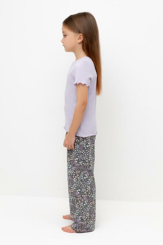 Трикотажная пижама из натурального хлопка. Футболка с короткими втачными рукавами изготовлена из эластичного трикотажа в рубчик. Брюки с эластичной резинкой в поясе выполнены из гладкого трикотажа супрем. Оригинальная набивка выполнена из стойких текстильных гипоаллергенных красителей. Изделие сохраняет цвет и форму после многократных стирок. Все трикотажные полотна производятся в соответсвии с нормами швейцарского сертификата ЭкоТекс.