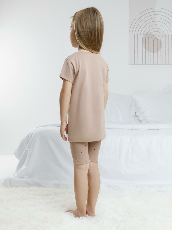 Трикотажная пижама для девочки с футболкой и велосипедками. Удлинённая футболка изготовлена из гладкого трикотажа супрем. Велосипедки выполнены из эластичного трикотажа в рубчик. Оригинальная набивка и принт выполнены из стойких текстильных гипоаллергенных красителей. Изделие сохраняет цвет и форму после многократных стирок. Все трикотажные полотна производятся в соответсвии с нормами швейцарского сертификата ЭкоТекс.