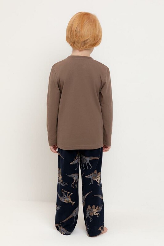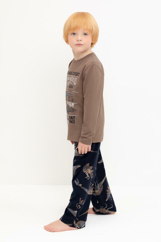Пижама для мальчика из натурального хлопка. Джемпер с длинными втачными рукавами и прямые брюки с эластичной резинкой в поясе. Оригинальная набивка и принт выполнены из стойких текстильных гипоаллергенных красителей. Изделие сохраняет цвет и форму после многократных стирок. Все трикотажные полотна производятся в соответствии с нормами швейцарского сертификата ЭкоТекс.
