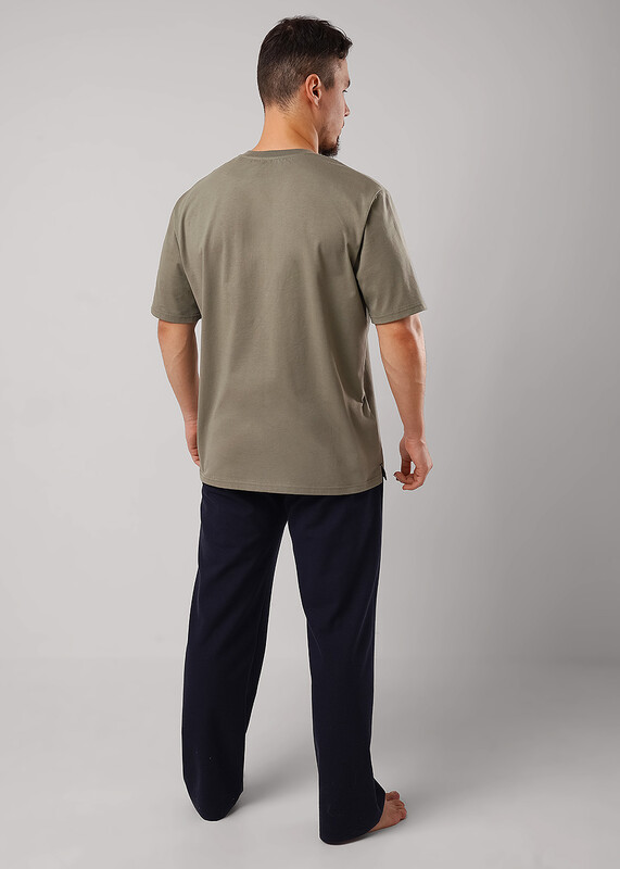 Набор мужской состоящий из футболки и брюк. Футболка из кулирной глади с округлым вырезом горловины и дизайнерским принтом. Брюки из фактурного полотна - ""пике"" на широком поясе с резинкой и регулируемым шнуром, по бокам удобные карманы.