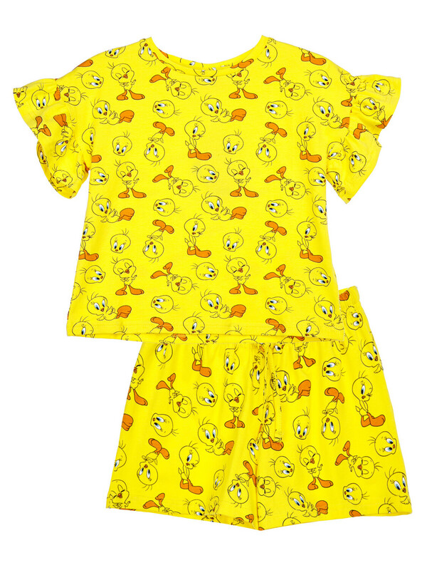 Пижама regular fit: футболка, шорты из качественного и приятного на ощупь трикотажа джерси. Высокое содержание хлопка 95%. Благодаря наличию эластана в составе ткани изделие проще в уходе и держит форму. Шорты с эластичным поясом со шнурком.