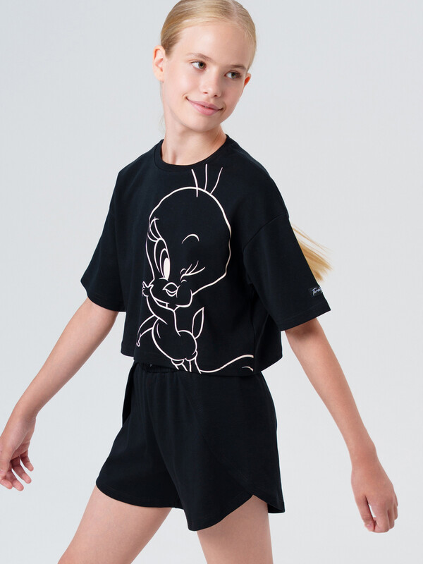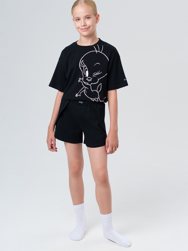 Пижама трикотажная для девочек (146, черный)(PlayToday)