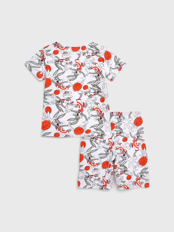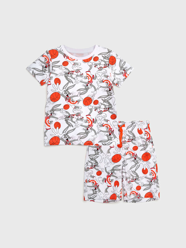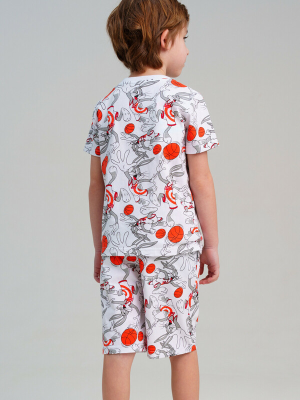 Пижама детская для мальчика. Футболка и шорты из эластичного и приятного на ощупь трикотажа. Шорты на резинке со шнурком. Высокое содержание хлопка 95%. Благодаря наличию эластана в составе ткани изделие держит форму и меньше мнется.