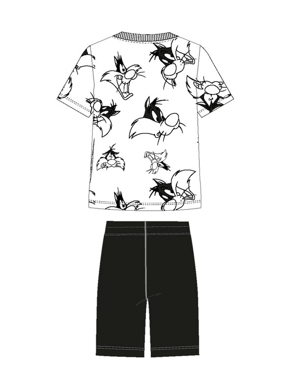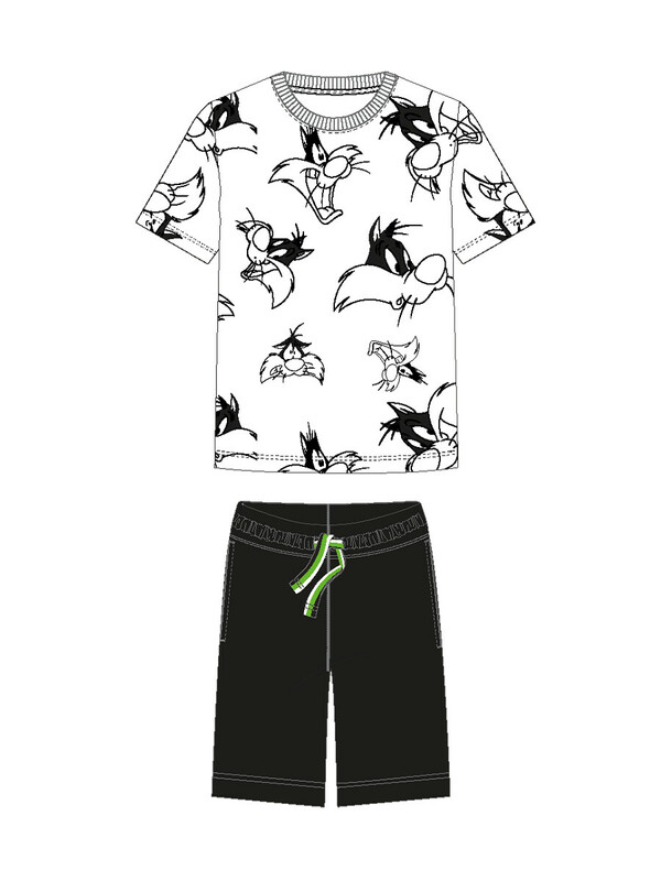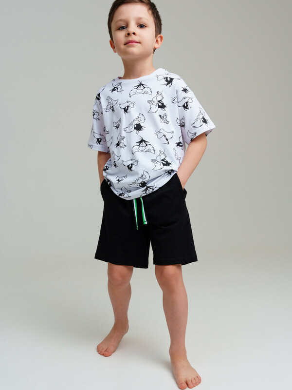 Пижама детская для мальчика. Футболка и шорты из эластичного и приятного на ощупь трикотажа. Шорты на резинке со шнурком. Шорты с карманами в боковых швах. Высокое содержание хлопка 95%. Благодаря наличию эластана в составе ткани изделие держит форму и меньше мнется.