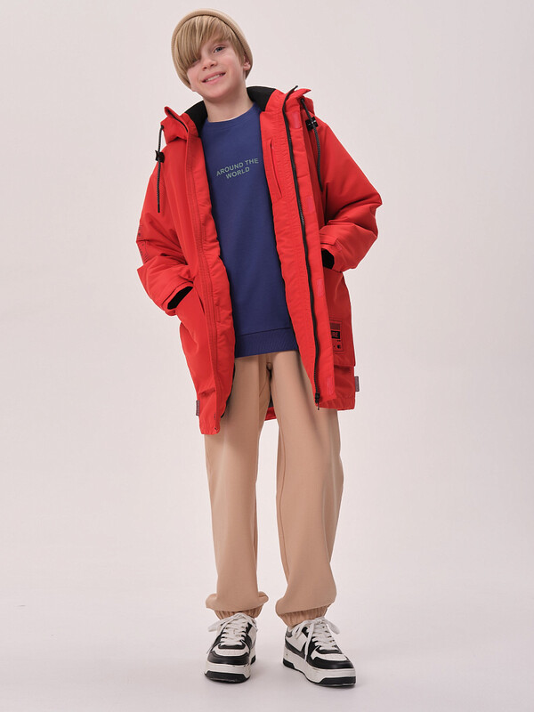 Удлиненная ветровка для мальчика идеально сочетает в себе функциональность и стиль. Прямой силуэт создает элегантный и универсальный образ.