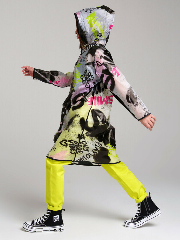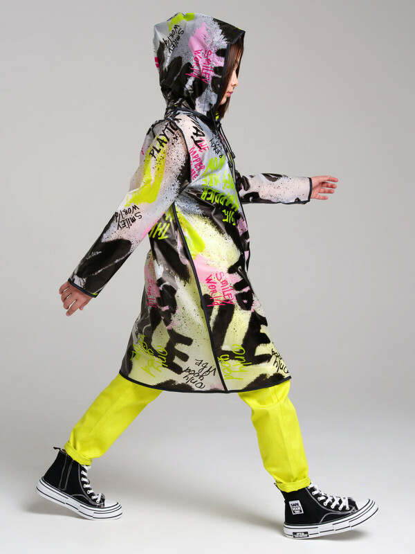 Плащ-дождевик с мешочком. Оптимальная длина. Застежка на кнопки. Добавлены петельки под капюшоном с внешней стороны, чтобы остальные вещи на вешалке не намокали.