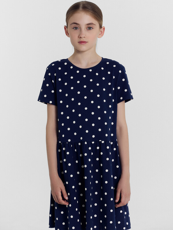Стильное платье в сердечко, изготовленное из хлопковой трикотажной кулирки. Модель отрезная по линии талии, где проходят сборочки. Рукава короткий, с небольшими манжетами. Вырез круглый Длина платья выше колена. Отличный выбор для вашей девочки!