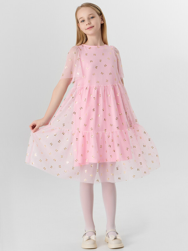 Нарядное платье для девочек двухслойное из высококачественного хлопка и деталей из сетки. Силуэт А-образный. Длина платья - мини. Вырез горловины - круглый. Застежка на пуговице с петелькой из резинки. Карманы отсутствуют, рукава-воланы короткие. В таком платье для девочки можно пойти на утренник, в школу и на любое праздничное мероприятие. Если вам надоели привычные праздничные платья и вы хотите красивое и нежное платье для девочки, эта модель вам однозначно понравится. Красивое и стильное, создаст нарядный образ маленькой принцессы. Платье несмотря на свой дизайн с декоративными элементами отлично подойдет в сад на каждый день, за счет натуральной ткани. Широкий размерный ряд, стильные расцветки. Материал изделия износостойкий, хорошо переносит стирки при правильном уходе. Легкое, удобное, оно отлично будет смотреться на ребенке. Купить платье детское недорого можно у нас на сайте и в магазинах Mark Formelle!
