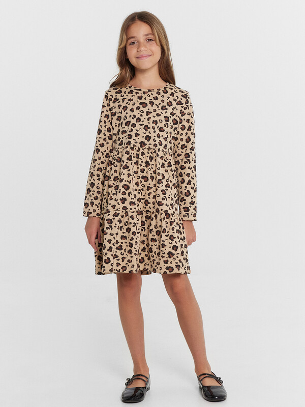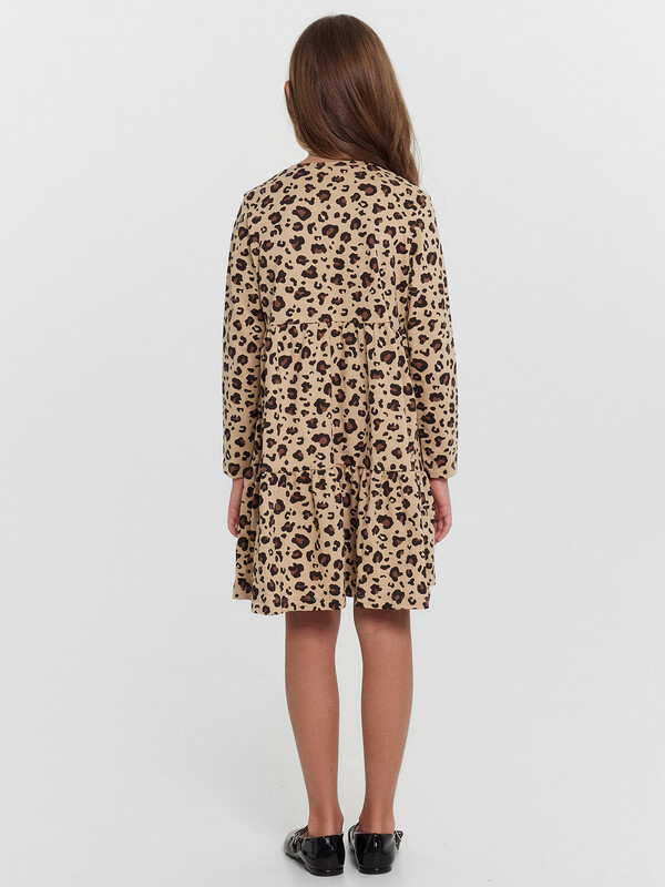 Это прелестное платье с отрезными воланами станет прекрасным дополнением к гардеробу вашей девочки. Выполненное из высококачественного 100% хлопка, оно обеспечивает исключительный комфорт и свободу движений, позволяя коже ребенка дышать. Изящный, полуприлегающий силуэт платья создаст женственный и элегантный образ. Длинные рукава и круглый вырез горловины гарантируют свободу движений. Оригинальный принт придает модели особенный шарм и индивидуальность. Благодаря продуманному крою и качественному пошиву, платье идеально садится по фигуре, обеспечивая комфорт и свободу на протяжении всего дня. Оно одинаково уместно как для повседневных прогулок, так и для праздничных мероприятий. Сочетайте его с колготками, кардиганами и туфельками для создания стильных образов!