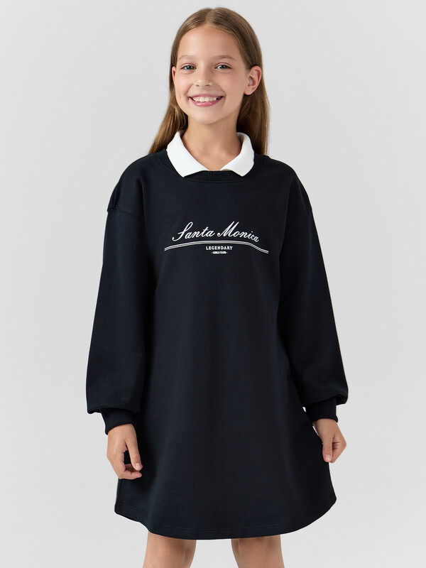 плоскошовной машине швом в подгибку. Длина платья выше колена.