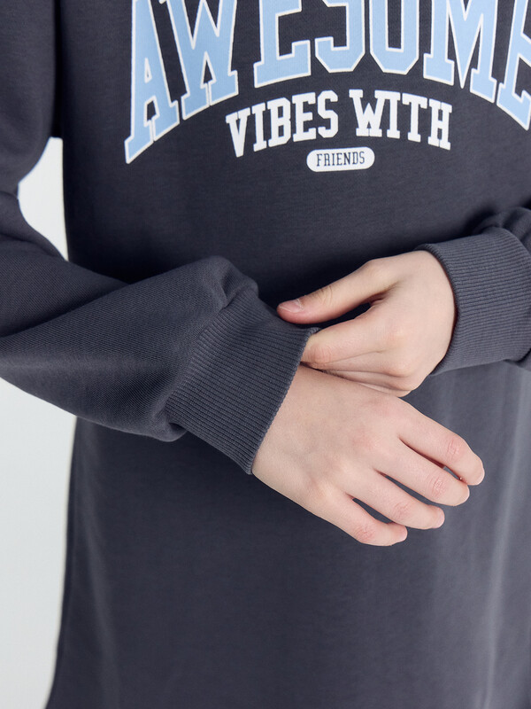 плоскошовной машине швом в подгибку. Длина платья выше колена.