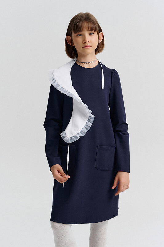 Идеальное платье для школы и не только! Стильное платье А-силуэта с длинными рукавами — настоящая находка для гардероба школьницы. Удобный крой не сковывает движений, а продуманные детали делают образ аккуратным и практичным.