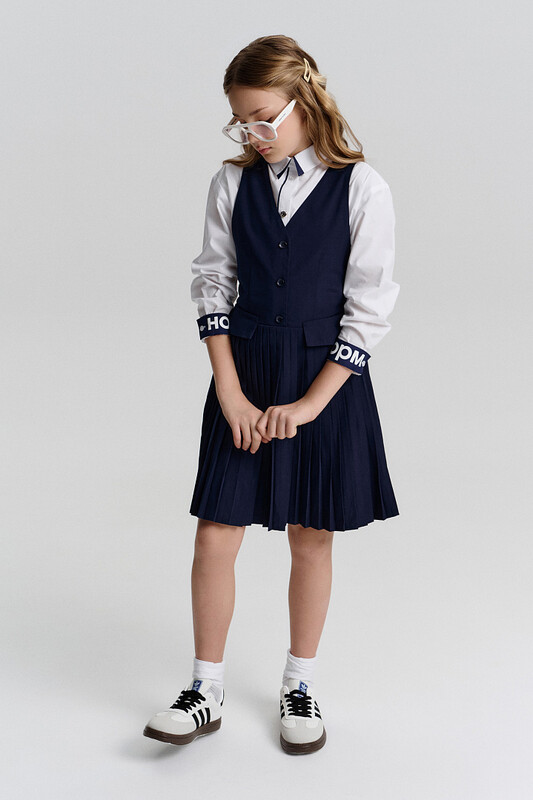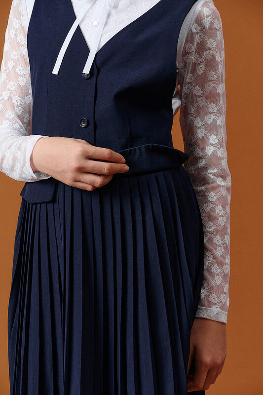 Декоративные клапаны на линии талии придают школьному образу стиль и аккуратность.